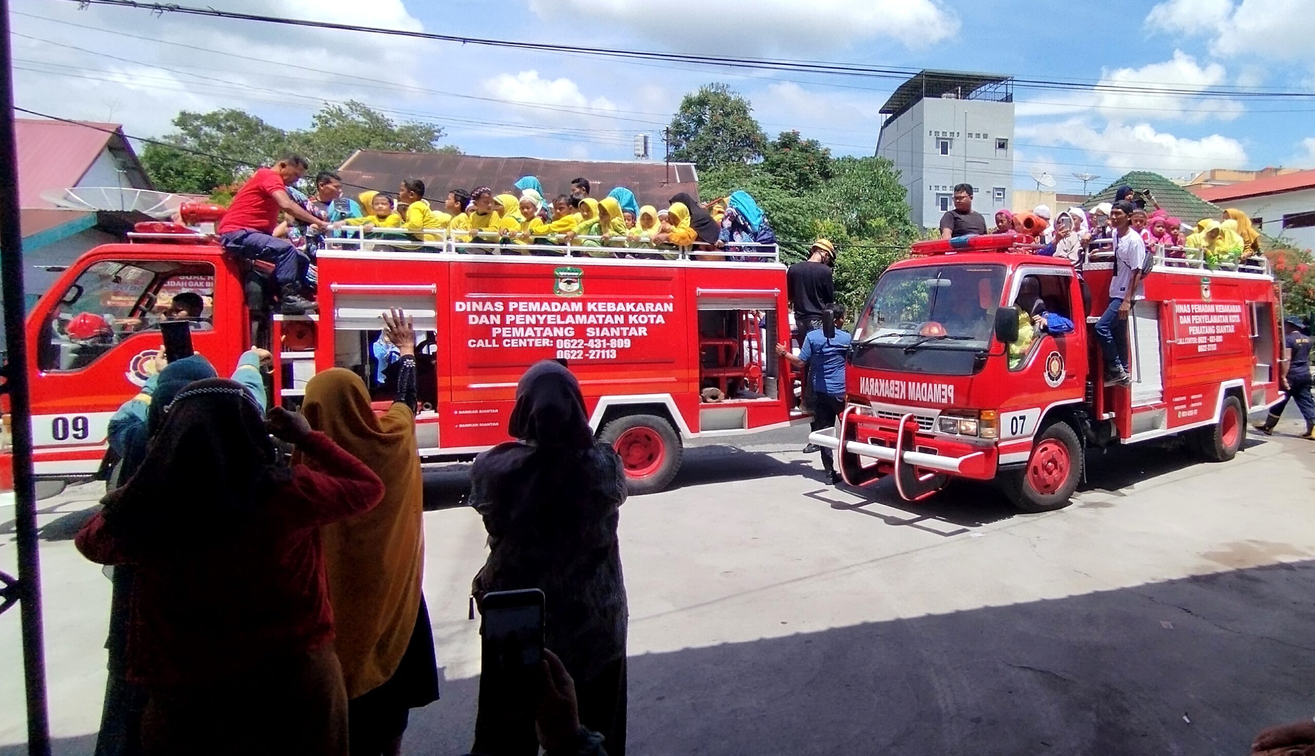 Kegiatan yang berlangsung di halaman Kantor Dinas Pemadam Kebakaran dan  Penyelamatan Kota Siantar itu, turut didampingi para guru dan orang tua, Senin (4/3/2024) sekira jam 109.00 Wib.