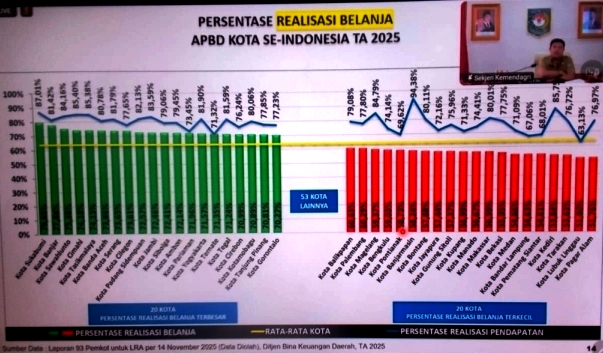 Dari 98 kota di Indonesia, Kota Siantar ternyata memiliki urutan kelima terbawah atau terendah soal serapan anggaran APBD 2025 dengan besaran 54,61 persen.