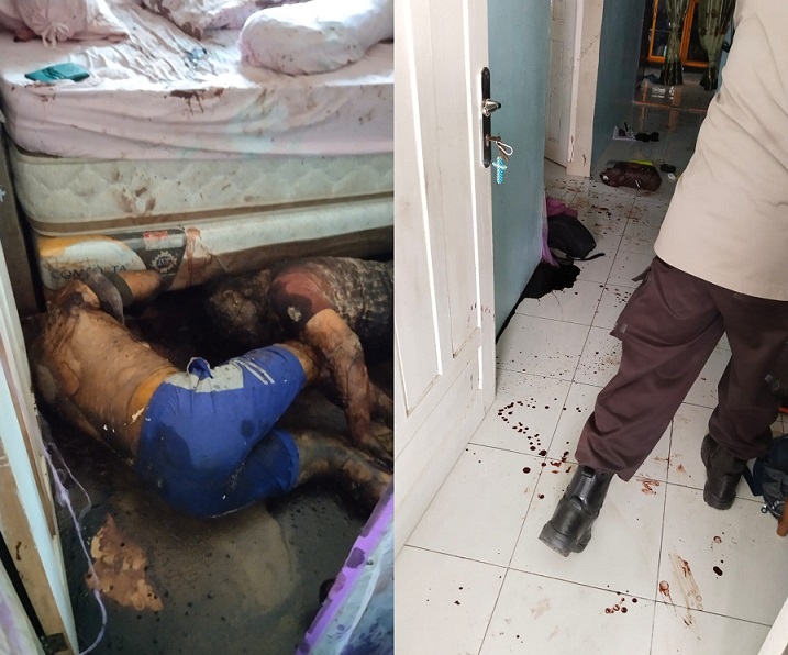 Karena penasaran, saksi memberanikan diri melangkah mendekati kamar yang pintunya terbuka. Ketika diteliti lagi, kedua korban tampak terkapar berdekatan dalam keadaan tak bernyawa di bawah tempat tidur.