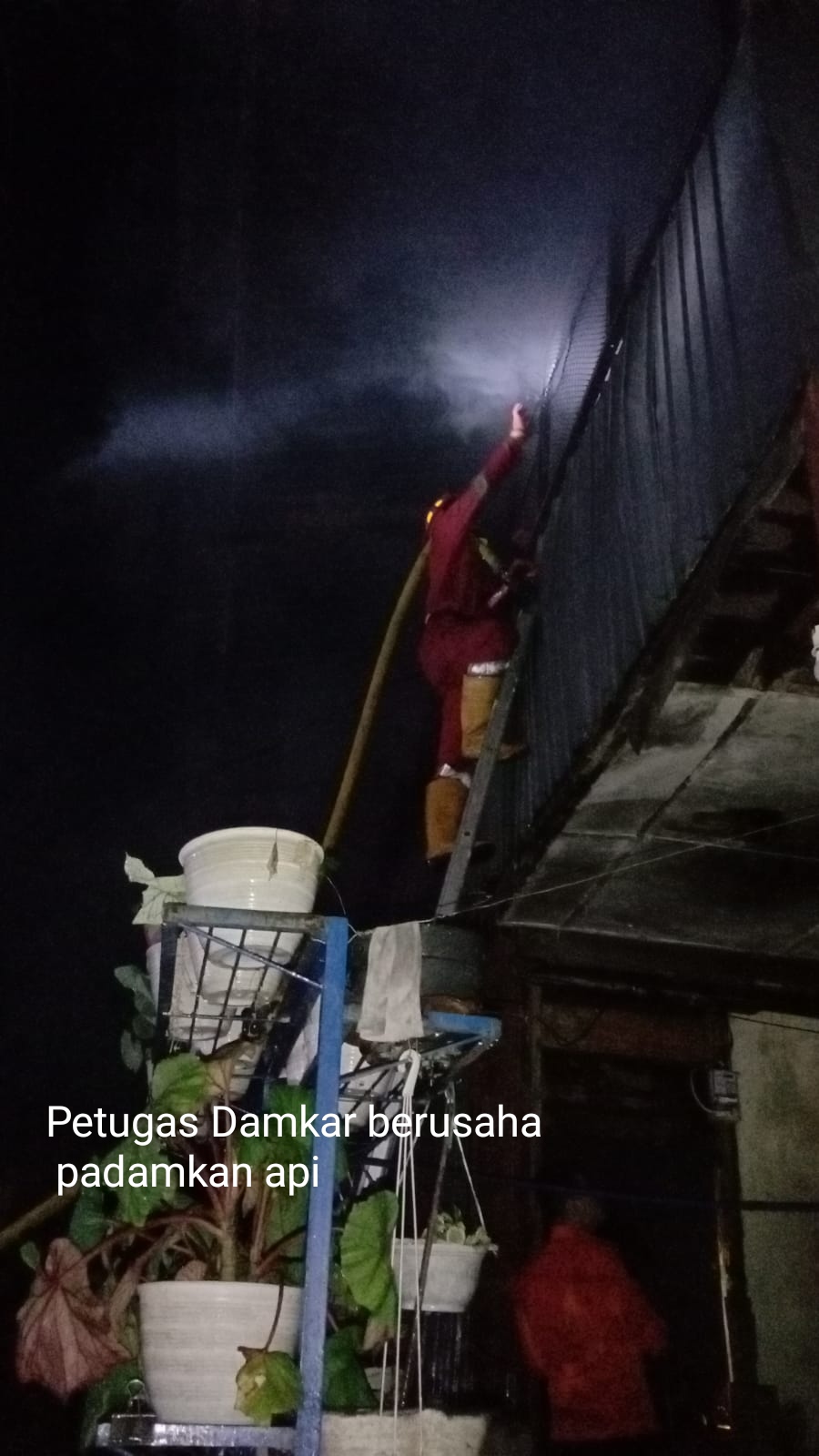 Jelang beberapa saat pemadam kebakaran (Damkar) yang dihubungi masyarakat tiba di lokasi. Dengan gerak cepat, petugas Damkar langsung menyemprotkan air ke arah kobaran api yang semakin marak.
