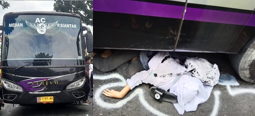 Saat kejadian itu, korban yang dibonceng teman lelakinya menggunakan sepeda motor, berada di kolong bus.. Kemudian, warga Lorong 20, Jalan Rakutta Sembiring, Kelurahan Naga Pita, Kecamatan Siantar Martoba, Kota Siantar tersebut dibawa ke RSUD Djasamen Saragih untuk keperluan visum.
