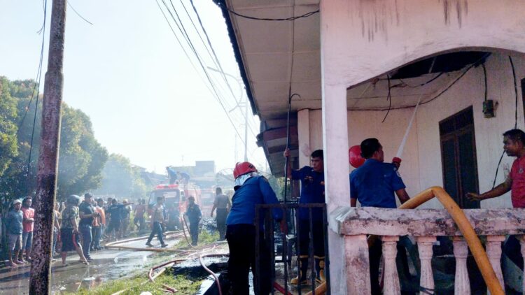 Kebakaran enam pintu rumah Kontrakan di Jalan Bah Bolon Kiri, Kelurahan Sigulang gulang, Kecamatan Siantar Utara, membuat penghuninya menjerit karena tak sempat menyelamatkan barang barang, Kamis (29/2/2024) sekira jam 09.00 WIB.