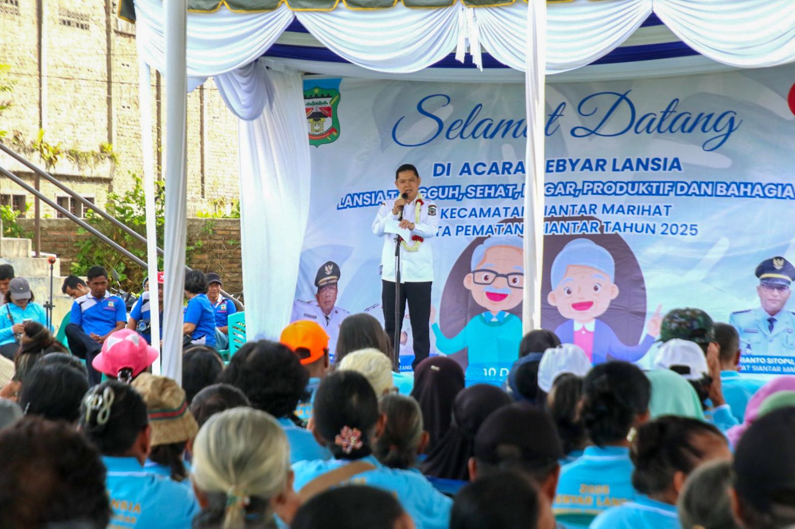 Walikota Siantar Wesly Silalahi diwakili Staf Ahli Bidang Pembangunan, Muhammad Hamdani Lubis hadiri  Gebyar Lansia Kecamatan Siantar Marihat Tahun 2025 yang berlangsung meriah, di Lapangan Farel Pasaribu, Kota Siantar, Rabu (10/12/2025) pagi.
