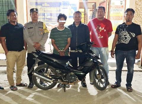 Pria berinisial AK (43), pelaku penggelapan  sepeda motor Suzuki Shogun SP, nomor polisi BM 5356 PY, diringkus personel Polsek Bangun dari depan rumahnya di  Nagori Pamatang Asilom, Kecamatan Gunung Malela, Kabupaten Simalungun.