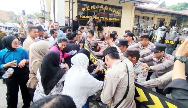Unjukrasa di depan Markas Polres Siantar, Jalan Sudirman, Kota Siantar memanas. Selain ada pembakaran ban, massa aksi dengan personel Polisi nyaris bentrok. Bahkan, ada pengunjukrasa yang diduga sebagai provokator diamankan.