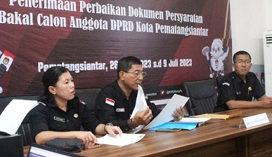 Sekretaris KPU Hermanto Panjaitan mengatakan, setelah berkas Bacaleg yang sudah memenuhi persyaratan diterima, KPU Siantar masih tetap melakukan verfikasi administrasi perbaikan dokumen Bacaleg mulai 7 Juli sampai 6 Agustus 2023 mendatang.