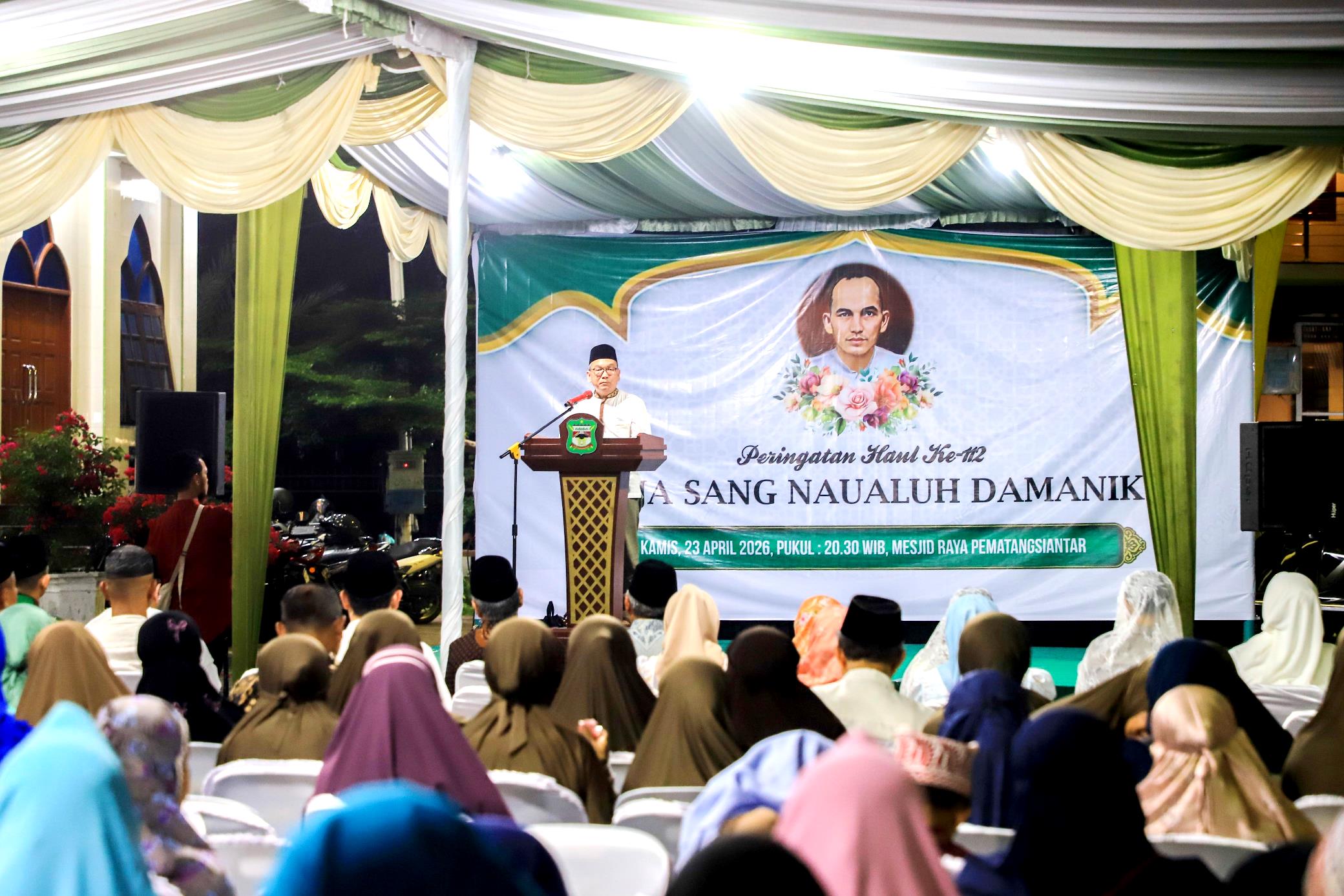 Pernyataan itu disampaikan Walikota Siantar Wesly Silalahi melalui sambutannya pada Haul Raja Sang Naualuh Damanik, di pelataran Masjid Raya, Jalan Masjid Kelurahan Timbang Galung Kecamatan Siantar Barat, Kamis (23/04/2026) malam.