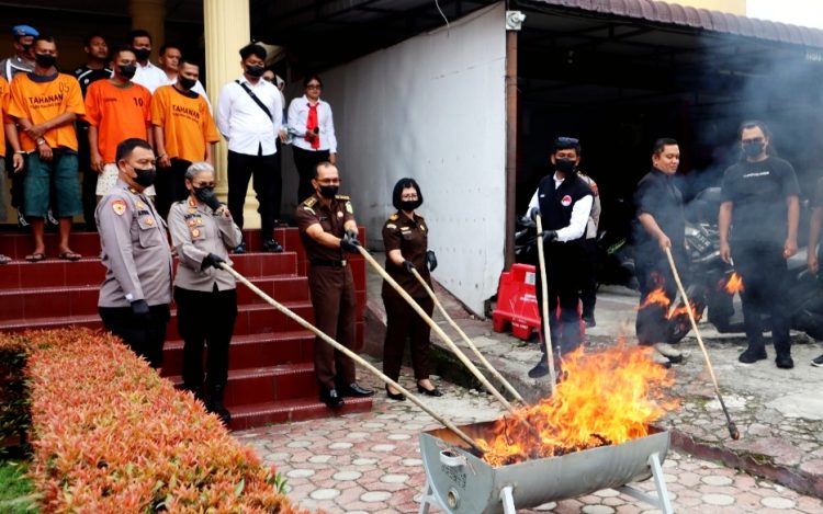 “Pemusnahkan total 1.906,85 Gram Narkotika jenis ganja barang bukti yang Berhasil diungkap OSatuan Reserse Narkoba. Angka ini setara dengan menyelamatkan setidaknya 5.720 jiwa manusia dari bahaya penyalahgunaan Narkotika, ” kata Kapolres.