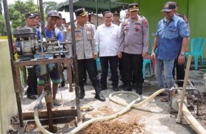 Kegiatan juga ditutup dengan peninjauan proses pembuatan sumur bor dan memutar besi kotrek untuk memutar mesin pengeboran oleh Kapolres Pematangsiantar. (Tn)