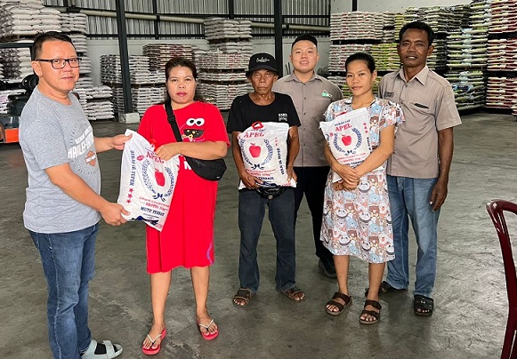 “Dalam setahun, kita empat kali menyalurkan bantuan berupa tali asih kepada masyarakat kurang mampu yang tinggal di sekitar Kilang Padi Sentosa,” kata Aliang sebagai pemilik Kilang Padi Sentosa.