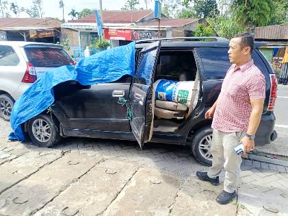 Mobil Xenia  yang kecelakaan membawa dua karung jahe