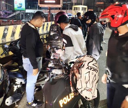 Lima sepeda motor yang menggunakan knalpot blong diamakan tim khusus Dayok Mirah Polres Sianțar yang melakukan patroli, Sabtu (14/2/2025) malam pukul 23.30 WIB.
