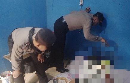 Personel Polsek melakukan olah TKP