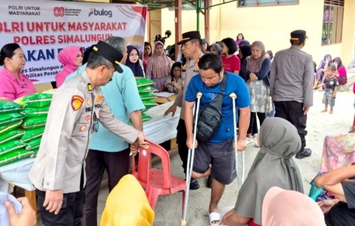 Melalui Gerakan Pasar Murah (GPM) di Halaman Mako Polsek Raya dan Halaman Mako Polsek Bangun, Polres Simalungun salurkan 7 ton beras Stabilisasi Pasokan dan Harga Pangan (SPHP) dengan harga terjangkau atau di bawah harga pasar, Rp 58.000 per karung ukuran 5 kg, Kamis (14/08/2025).