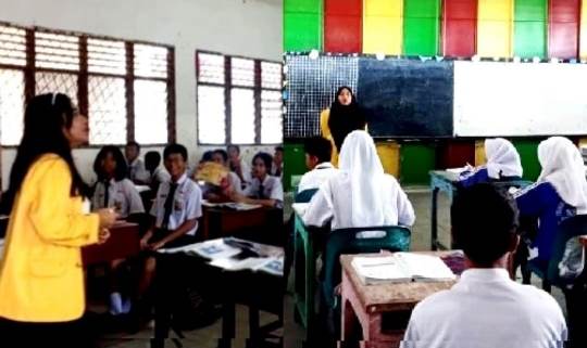 Mahasiswa keguruan lainnya Sepriana Sipayung (21), memberi pesan, selama mengikuti PLP itu mendapatkan pembelajaran tentang cara berinteraksi dengan murid-murid dan cara mengajar di depan kelas.