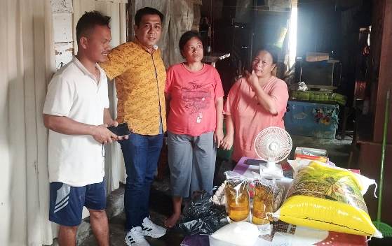 Sebelum meninggalkan rumah tersebut Hendra Pardede menyerahkan bantuan sembako berupa satu karung beras, gula putih, minyak goreng, telur satu papan dan daun teh. Dengan harapan, dapat sedikit meringankan beban keluarga dimaksud.