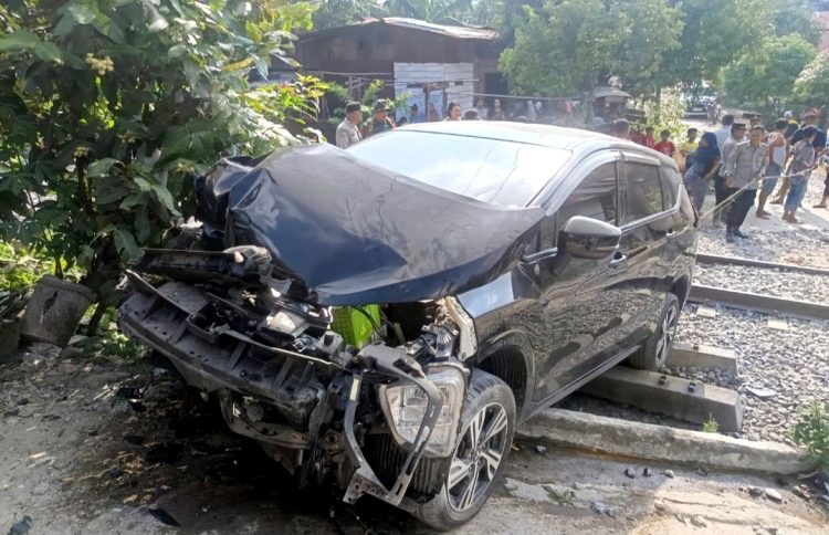 Saat melintasi rel kereta api, di Jalan Anggaran Damanik Lingkungan III, Kelurahan Sinaksak, Kecamatan Tapian Dolok, Kabupaten Simalungun, mobil Expander warna hitam BK 1720 ACJ ditabrak kereta api peti kemas, Sabtu (07/03/2026) sore sekitar pukul 15.30 WIB.