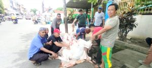 Penyembelihan itu langsung dilakukan ketua MUI Pematangsiantar Drs H M Ali Lubis sembari menyebut nama kedua orang tua Ny Liswati , Tulus Hadi Siswoyo Bin H Ali dan Hj Sofia.