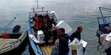 SIMALUNGUN,SENTERNEWS Personel Polsek Purba Resort Polres Simalungun berusaha mengamankan logistik Pemilu 2024 dari Kecamatan Haranggaol Horison menuju Nagori Sihalpe, Kabupaten Simalungun dengan menyeberangi Danau Toba. Dengan menggunakan kapal...
