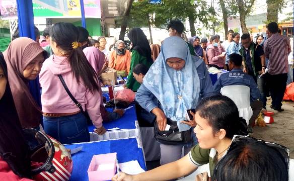 Diinformasikan, Pasar Murah menjual berbagai jenis kebutuhan seperti, Beras SPHP isi 5 Kg, Rp56.500. Minyak goreng 1 liter, Rp14.000. Telur 1 papan, Rp50.000. Gula pasir 1 Kg, Rp17.000. Cabai merah 1/2 Kg Rp15.000. Bawang merah 1/2 Kg Rp14.000. Bawang putih 1/2 Kg Rp15.000 dan Tomat 1 Kg, Rp17.000. (In)