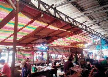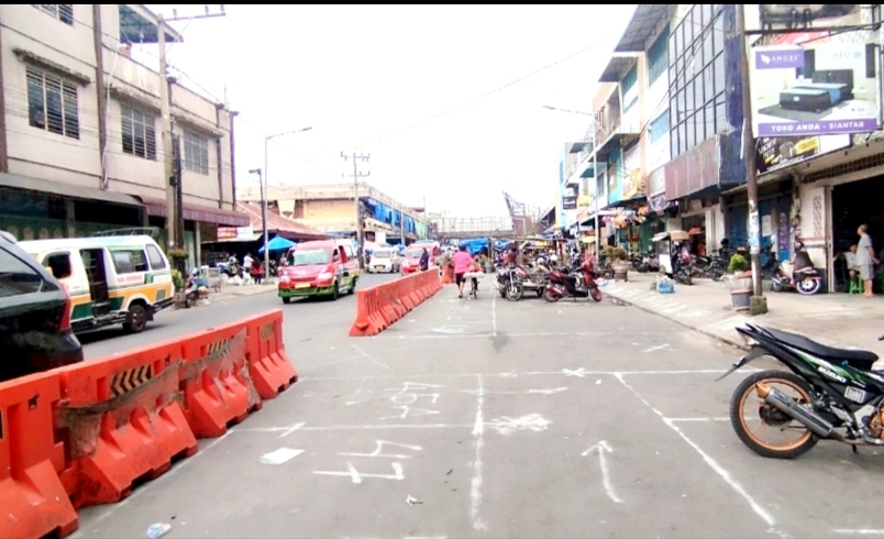 Sementara, di Jalan Merdeka bawah sebagai relokasi pedagang yang baru itu, ada beberapa kerangka kios yang sudah berdiri dan belum diisi dagangan. Sedangkan ratusan pedagang masih tetap berjualan di lokasi lama.