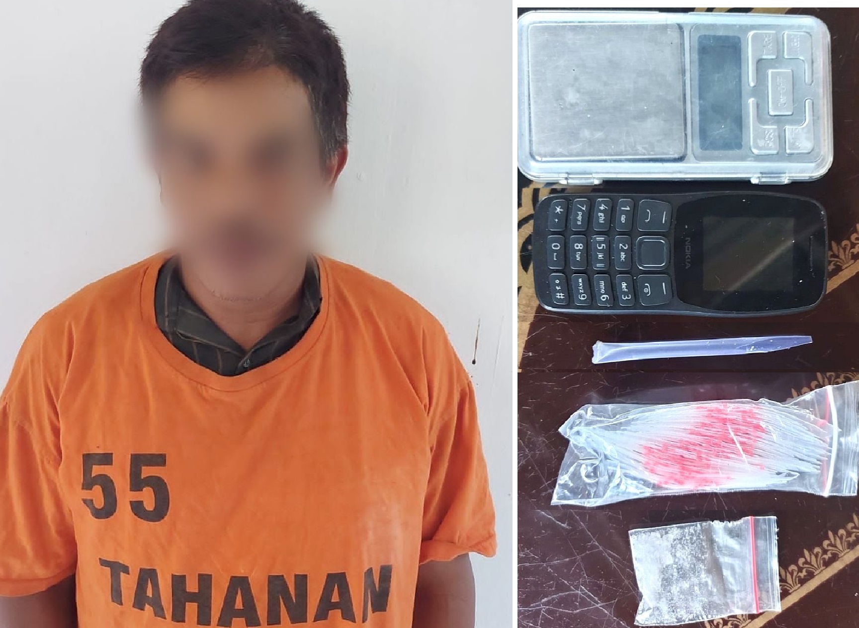 Selanjutnya, rumah tersangka digerebek dan personel berhasil mengamankan sejumlah barang bukti. Diantaranya, 1 bungkus plastik klip transparan berisi diduga narkotika jenis sabu dengan berat bruto 0,64 gram, 1 unit timbangan digital, 1 unit ponsel Nokia warna hitam, 1 bal plastik klip kosong dan skop terbuat dari pipet plastik.