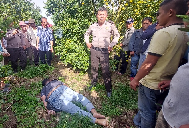 Seorang petani, Pertibi (42), warga Jalan Kota Cane, Kelurahan Laucimba, Kecamatan Kaban Jahe, Kabupaten Karo, ditemukan telungkup tak bernyawa di areal perladangan jeruk, Nagori Purba Dolok, Kecamatan Purba, Kabupaten Simalungun Sabtu (23/9/2023) sekira jam 15.00 Wib.