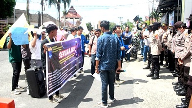 Pernyataan itu disampaikan melalui seruan aksi puluhan mahasiswa berbendera PC PMII Kota Siantar Simalugnun yang mengusung sejumlah poster di depan Mapolres Siantar, Senin (5/6/2023) sekira jam 11.00 Wib.