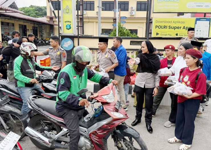Takjil  berupa  nasi kotak sebanyak 100 kotak beserta air mineral dibagikan kepada pengendara  Ojol dan  masyarakat yang melintas dari depan Polres Siantar. Tujuannya,  membantu masyarakat yang masih diperjalanan saat berbuka puasa.