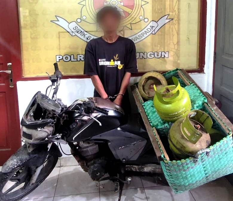 Aksi yang dilakukan itu, lebih dulu merusak engsel pintu dan pelaku yang sudah dijadikan tersangka itu berhasil menggondol tujuh tabung gas elpiji 3 Kg dan satu tas berisi alat pangkas dengan kerugian sekitar Rp 2.850.000, Senin (20/11/2023) sekira jam 21.30 Wib.