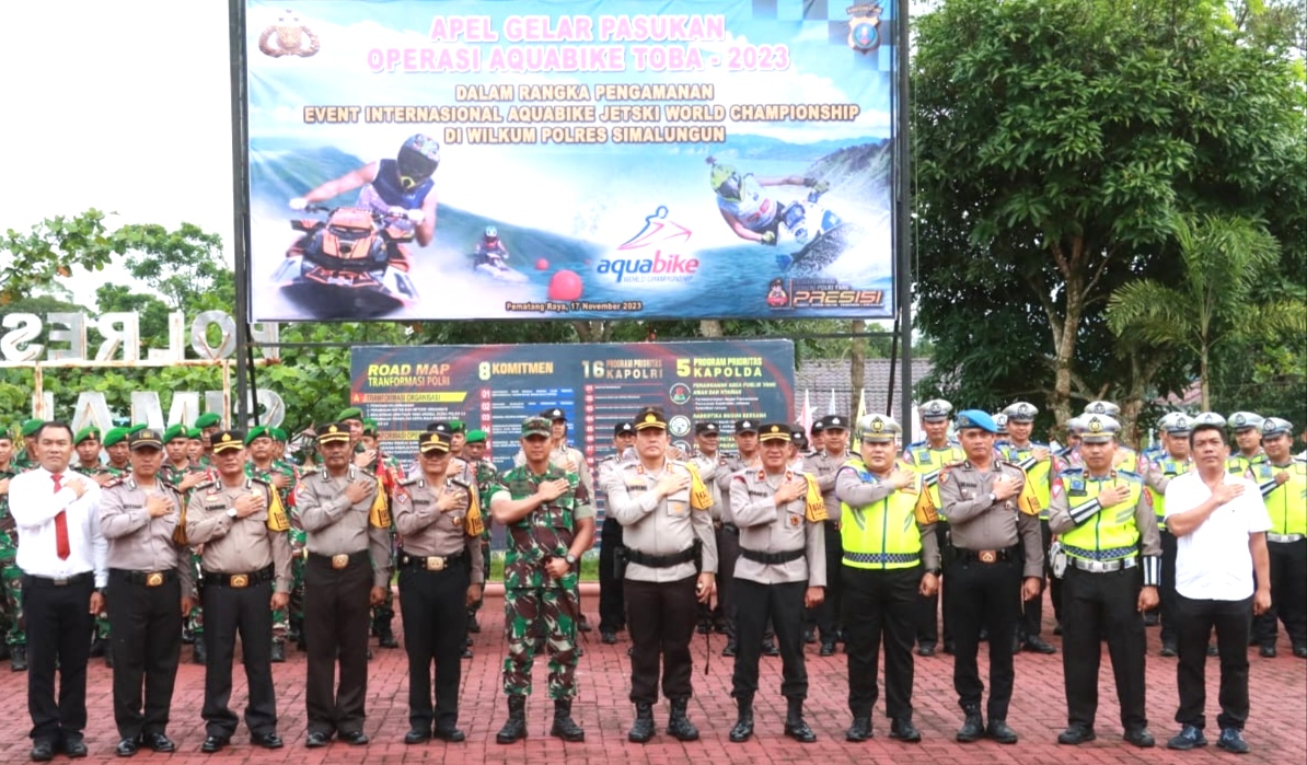 Diinformasikan, terkait dengan pengamanan Event internasional Aquabike Jetski World Championship akan melibatkan 250 personel dari Polres Simalungun, 100 personel dari Kodim 0207/Simalungun, 30 personel dari Dishub Pemkab.Simalungun, dan 30 personel darri Sat Pol-PP Pemkab.Simalungun.