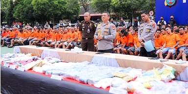 Ada tiga tempat yang kita sudah lakukan (penindakan) dengan bekerjasama dengan Rutan,” kata Kapolda sembari mengatakan, program Rehabilitasi untuk pecandu selama 22 hari. Terakhir pihak kepolisian menangkap 1.058 nelaku narkoba. Rinciannya, 759 bandar, 299 pengguna. Sedangkan barang bukti 75,97 kg sabu dan 114 Kg ganja.