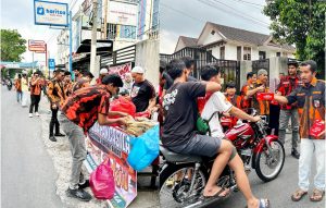 “Takjil yang kita bagikan pada bulan Ramadhan ini selalu kita lakukan setiap bulan Ramadhan tiba. Sama seperti tahun-tahun sebelumnya,” kata Andika Prayogi Sinaga Ketua PAC Pemuda Pancasila Siantar Barat yang langsung turut membagikan takjil. Didampingi Sekretaris Hendra Darwian SH dan bendahara Farullah.