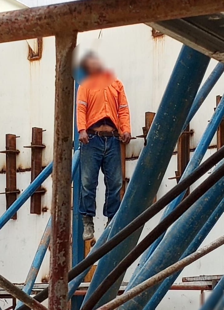Pasalnya, di salah satu sudut, saksi melihat sosok tubuh berpakaian oranye celana jeans lengkap dengan sepatu kerja, dalam kondisi tergantung menggunakan tali tambang. Ketika didekati, sosok tubuh itu ternyata teman kerjanya, Afriandi (31).