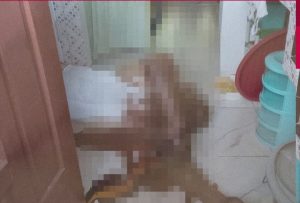 Saat pihak Kelurahan melakukan pengecekan, pintu belakang rumah korban ternyata terbuka. Ketika diperiksa ke bagian dalam, korban ditemukan tergeletak di depan pntu kamar mandi dengan kondisi mengenaskan karena telah mengumbar bau tak sedap.
