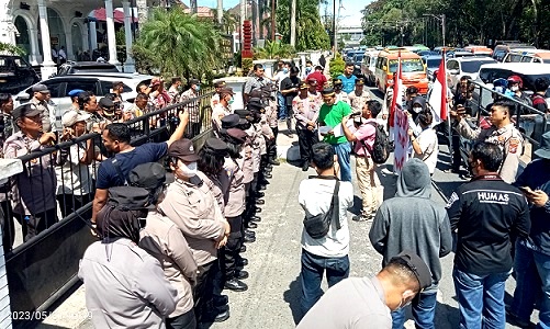 Namun, saat tiba di kantor Wali Kota, pintu gerbangnya ternyata ditutup dan dijaga puluhan personel Polres Siantar yang melakukan pagar betis. “Kenapa pagar kantor Wali Kota ditutup? Kita bukan maling! Kita ingin masuk menemui ibu Wali Kota,” ujar pengunjukrasa.