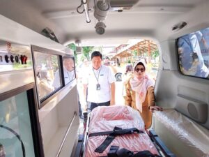 Penyerahan 1 unit mobil ambulans yang berlangsung di halaman RSUD DR Djasamen Saragih Kota Siantar itu, turut disaksikan Direktur RSUD dr Djasamen Saragih, dr Aulia Sukri Sambas MKM, Senin (11/12/2023).