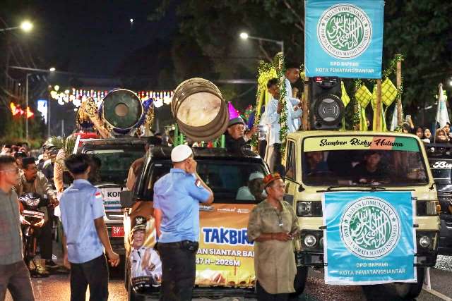 Pawai Takbir Keliling diikuti instansi pemerintah, remaja masjid, BKM, ormas, OKP, dan diiringi konvoi masyarakat Kota Siantar yang menggunakan kendaraan, baik roda dua maupun roda empat.
