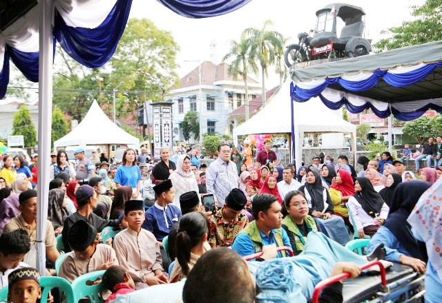 Walikota Siantar Wesly Silalahi dan Ketua TP PKK Ny Liswati Wesly Silalahi hadiri acara Buka Puasa Bersama Rumah Peduli Siantar. Berlangsung di Lapangan Parkir Pariwisata, Jalan Merdeka, Minggu (15/03/2026).