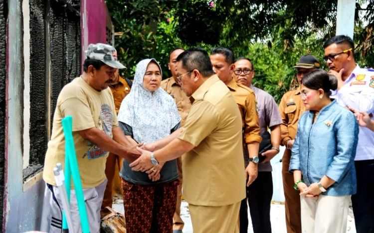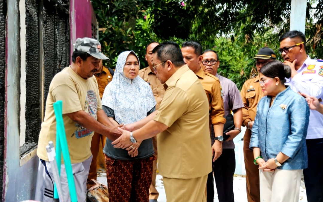 Walikota Siantar Wesly Silalahi  didampingi Ketua TP PKK Kota Siantar Ny Liswati Wesly Silalahi serahkan bantuan kepada keluarga, Sulfan Solihin (63), korban kebakaran rumah di Jalan Kasuari Kelurahan Sipinggol-pinggol Kecamatan Siantar Barat, Selasa (20/01/2026).