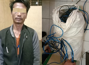 Ternyata, saat itu ada sejumlah warga sedang menggali kubur untuk orang meninggal, melihat pelaku di bangunan kosong tersebut. Karena gerak-geriknya sangat mencurigakan, pelaku ditangkap lengkap dengan barang bukti kabel curian dalam goni. Selanjutnya, diserahkan ke Polsek Siantar Martoba.