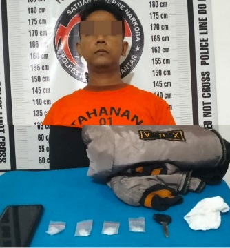 Saat digeledah, ditemukan barang bukti 4 paket sabu serta 1 unit Handphone merek Tecno Spark warna Hitam. HP yang diinterogasi mengaku barang bukti miliknya itu didapat dari seorang laki-laki inisial A yang berada di Kota Medan.